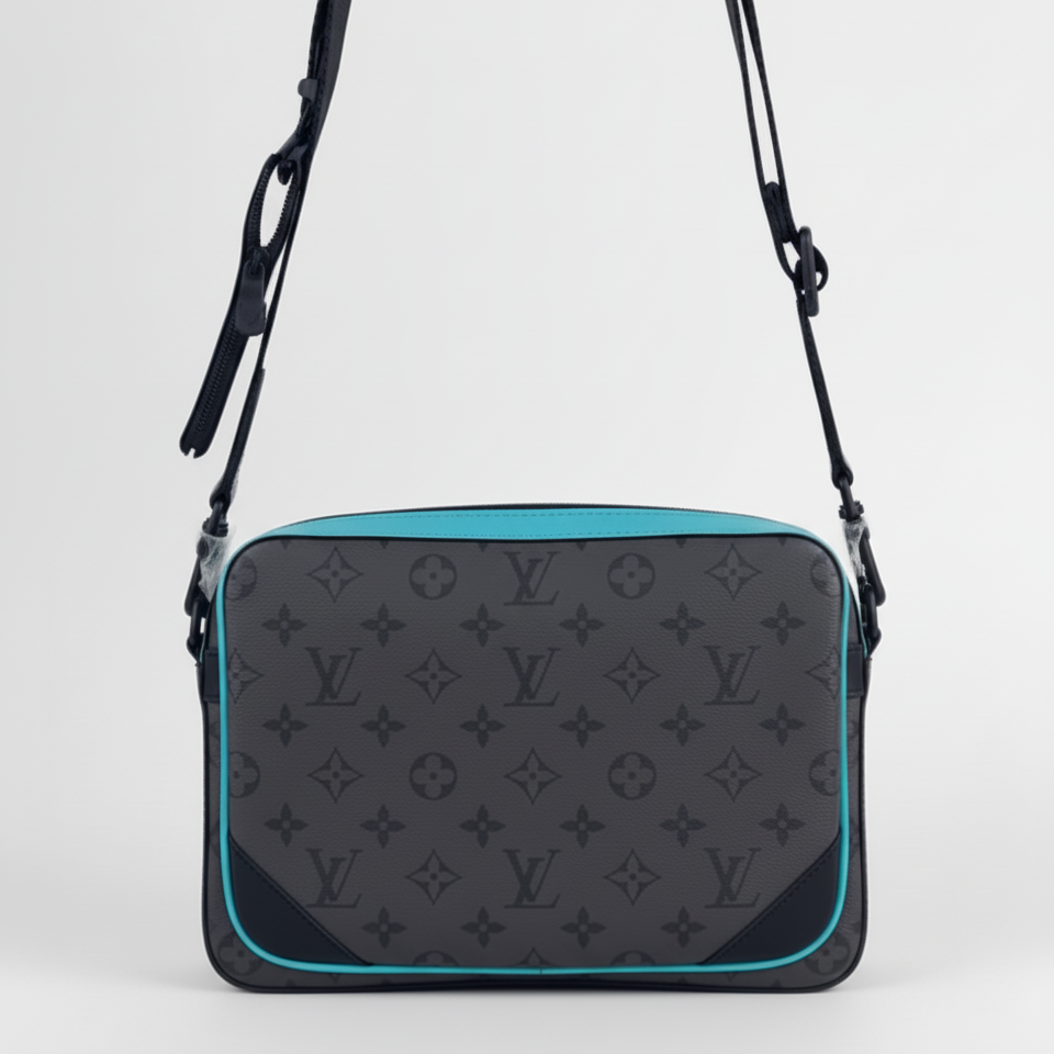 Questa versione in Monogram canvas scuro con dettagli azzurri a contrasto fonde il DNA classico di LV con un’estetica giovane, moderna e decisa